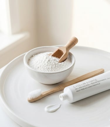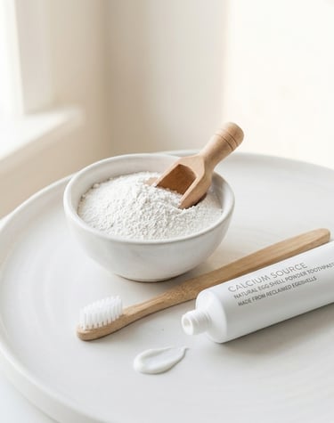 Eggshell powder is used as a mild abrasive and calcium source to help in cleaning and strengthening teeth.