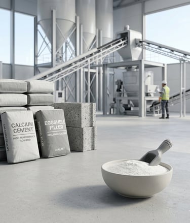 Eggshell powder is used as a filler material to enhance strength and reduce production cost in cement.